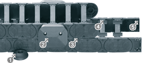 Dolgi hodi vedno predstavljajo posebne zahteve za sisteme z e-verigami. Na določeni točki mora biti zgornja veriga sposobna drseti po spodnjem delu ali po drsniku. Poleg tega sistem e-verige zahteva vodenje za preprečevanje stranskega odmika. V večini primerov je to zagotovljeno z žlebom za vodenje e-verig. So pa tudi aplikacije, pri katerih žleba za vodenje ni mogoče uporabiti zaradi vizualnih učinkov ali prostorskih pogojev. Da bi zapolnili to vrzel, je podjetje igus® leta 1995 razvilo sistem za samodejno drsenje. Ti sistemi so samonastavljive e-verige, ki lahko nadomestijo žlebove za vodenje pri do 50 m dolgih hodih. Prihranite lahko z ugodnim nakupom in pri stroških vgradnje poleg tega pa so vaše hale brez ovir za viličarje in druga transportna vozila.